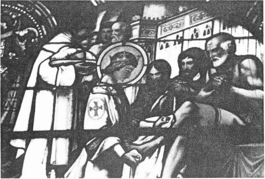 La vie de Saint-Louis commence par le vitrail de droite en entrant dans l’église à gauche … pour terminer dans le chœur avec l’accession de Saint-Louis au paradis.