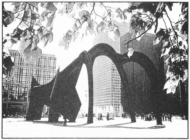 C’est ainsi qu’une première série de contacts fut engagée qui donna lieu à certaines réalisations : stabile monumental d’Alexander Calder (fig. 7) « grand stabile rouge » de 17 mètres de haut situé face à la tour Fiat.