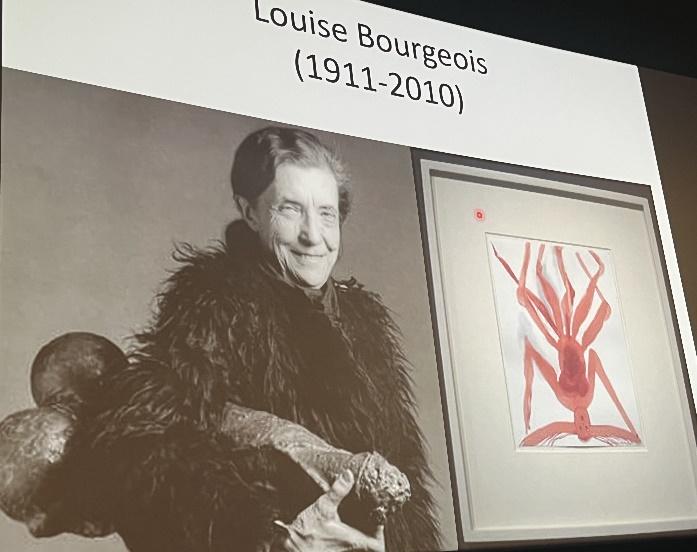 Louise Bourgeois (1911-2010) se distingue d’abord dans les mouvements féministes d’après-guerre et son œuvre rend hommage au dévouement de sa mère. Cette dernière est tisserande dans l’atelier familial de restauration de tapisseries et l’artiste aime faire le parallèle entre les fils de la couturière et la toile de l’araignée. Elle s’inspire de la mythologie grecque qui relate l’histoire d’Arachné qui tisse si bien qu’elle provoque la jalousie de la déesse Athéna. Arachné est si triste qu’elle se pend. Athéna touchée, transforma Arachné en un invertébré qui a la faculté de tisser mais uniquement pour se nourrir. Pour Louise Bourgeois, l’araignée qui protège et tisse symbolise parfaitement l’amour maternel, les formes arachnéennes peintes ou sculptées intitulées « Maman » sont une ode à sa mère. On peut voir certaines de ses araignées géantes devant la Tate Modern de Londres, le musée Guggenheim de Bilbao ou le musée des beaux-arts du Canada à Ottawa. Réduisant l’image de son père à une forme purement phallique, Louise Bourgeois affirme par là-même un art engagé où le courage féminin prend le pas sur la domination masculine.