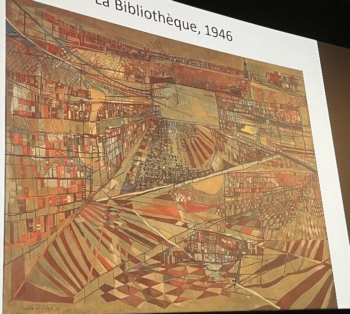 Pendant très longtemps on a considéré que les innovations en art ont été apportées par les hommes. La naissance de chaque courant artistique a été associée à un artiste ou à un groupe d’artistes masculins. Or certaines artistes féminines ont apporté de grandes nouveautés. C’est le cas de l’artiste portugaise Maria-Helena Vieira da Silva (1908-1992) qui prend des éléments très concrets et quotidiens qu’elle développe dans des compositions complexes confinant à l’abstraction géométrique. Dans « Jeu de cartes » (1937) ou « La partie d’échecs » (1943), « la Bibliothèque » (1949) c’est un dialogue vertigineux entre l’espace, le mouvement et les formes où la perspective n’est plus un moyen mais un sujet de représentation. La simplification est poussée à l’extrême dans la toile « La gare Saint-Lazare » (1949) mais grâce au titre on se plonge dans la réalité d’une gare (couleur grise, lignes des rails et de la verrière, effet de fumée etc.).