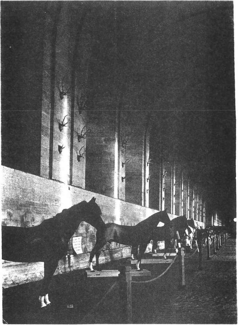 Dans une galerie, des chevaux de carton et des mannequins illustrent les principales disciplines équestres du monde à travers les continents (voir page suivante).