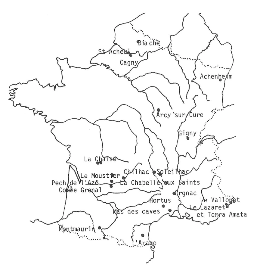 Il est bien connu en France La carte ci-jointe (fig. 2) indique les principaux chantiers explorés. Le paléolithique inférieur a connu trois glaciations (Gunz, Mindel, Riss).