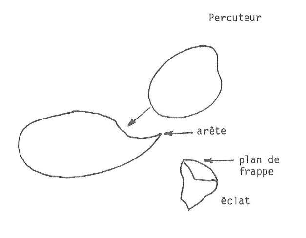 Un talon, facilitant la préhension, peut être enlevé après la taille. Celle-ci se fait avec un percuteur dur. Elle peut être affinée avec un percuteur doux de bois dur ou d’os avec lequel l’homme donnait des petits coups répétés sur les bords.