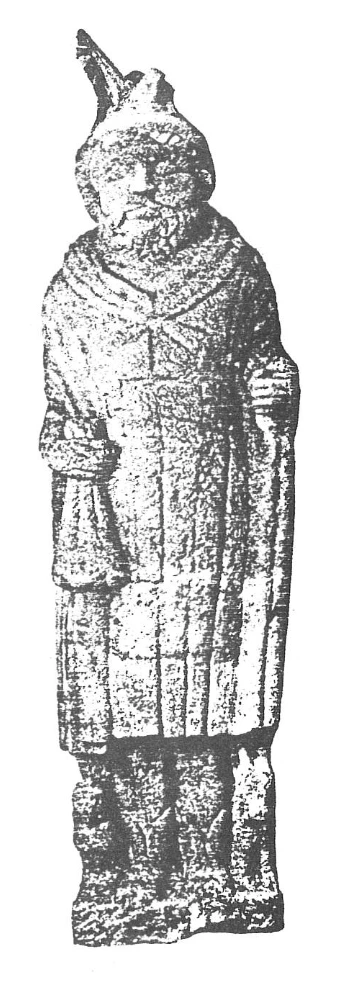 C’est un dieu gallo-romain. Il est vêtu d’un manteau gaulois, mais par a1lleurs sa coiffure, le pétase ailé, est caractéristique du Mercure Romain.