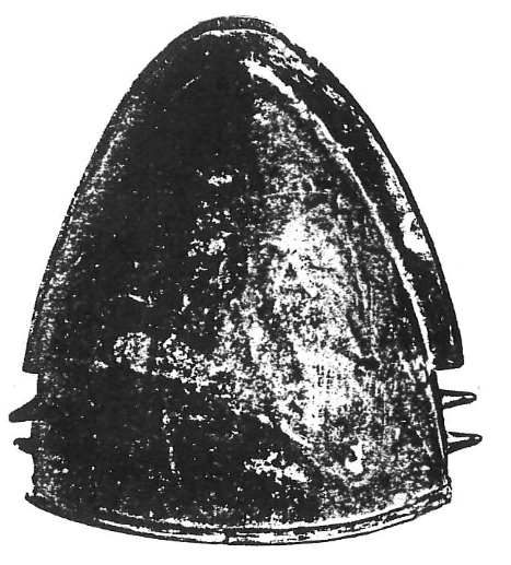 Les armes : On voit une grande épée de fer damassée, c’est à dire Formée de rubans de métal de duretés différentes, soudés et forgés en les repliant sur eux-mêmes. On obtenait ainsi des armes robustes et souples qui ne se brisaient pas.
