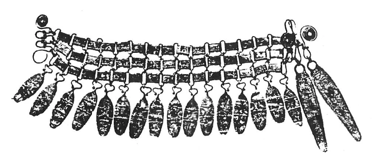 La parure est constituée par de grands bracelets à oreillettes, par des agrafes de ceinture, par des fibules…