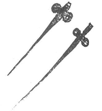 L’Hallstatt final (550-450 av. J.C.) où l’on trouve l’épée à rognons. De nouveaux objets de parure sont créés. Les fibules ont un long ressort.
