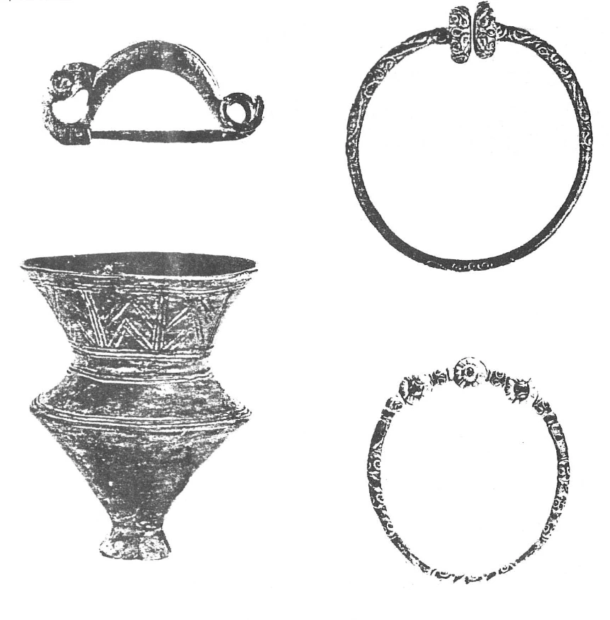 Les bijoux : Nombreux bracelets en verre, en pierre dure, en bronze ; bagues en pierre dure, épingles à cheveux en ivoire, ou encore des médaillons, des fibules qui sont des broches ou des épingles de sûreté destinées à attacher les vêtements drapés.