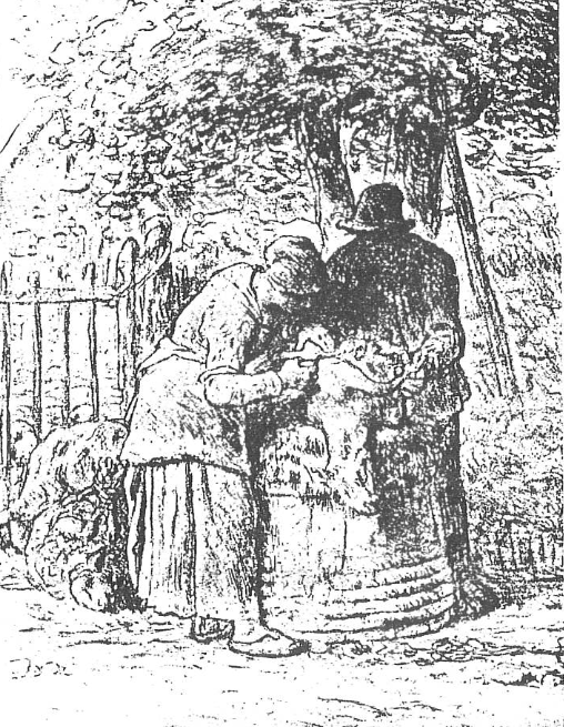 J.F. Millet naquit le 4 octobre 1814 à Gruchy près de Cherbourg, d’une famille de cultivateurs aisés. Il fut élevé au milieu de ses sept frères et sœurs dans une atmosphère de haute vertu, d’humilité et de respect de Dieu.