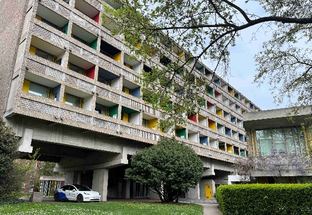 Nous reprenons la balade avec un petit arrêt devant la Fondation suisse / Pavillon Le Corbusier.