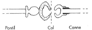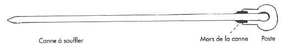 La canne est un tube d’acier creux de 1,20 à 1,40 m de longueur et de 15 à 25 mm de diamètre.