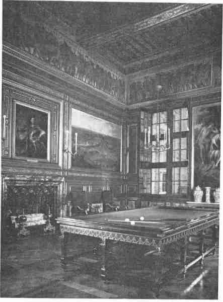 La Grande chambre carrée est la seule pièce du château qui comporte un plafond traditionnel dit « à la française » dont les poutres sont apparentes et décorées dans le style du XIIIème siècle. Au centre de la pièce, le billard de dimensions exceptionnelles a été exécuté en style Boulle en 1877.