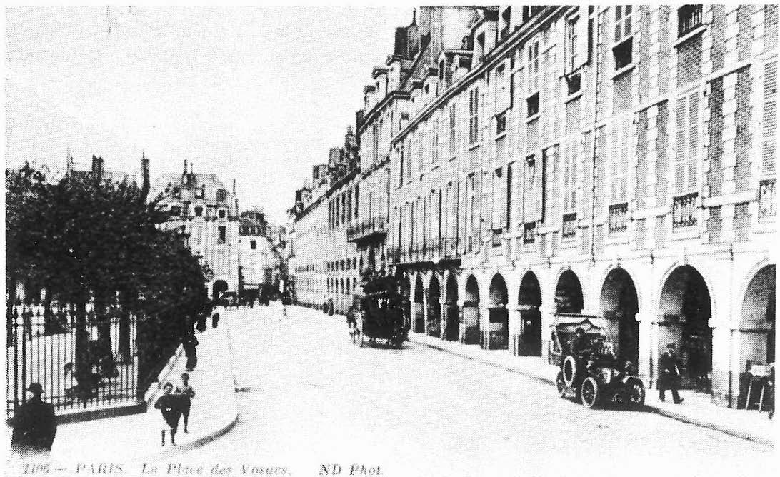 La Place des Vosges, autrefois Place Royale, occupe en partie l’emplacement de l’ancien hôtel des Tournelles qui fut jadis une des demeures préférées des rois de France. Cet hôtel devait son nom aux petites tours que l’environnaient. Charles VI vint y habiter à plusieurs reprises. Les parcs et les jardins occupaient un espace considérable. On y voyait des ceps de vigne, des potages, des vergers …