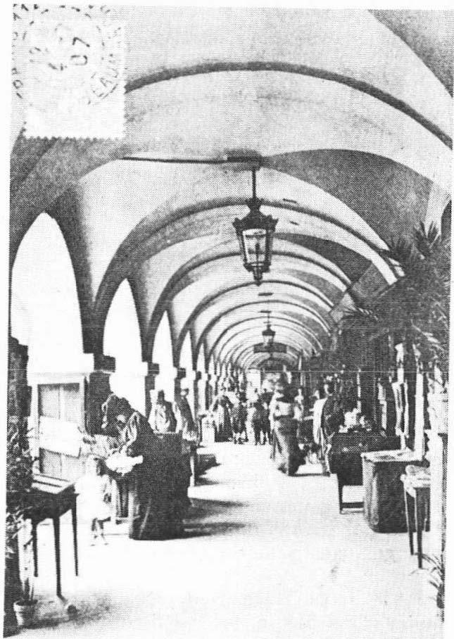 Nous passons sous un promenoir de la Place. Là se trouvaient dès le 17ème siècle des boutiques avec un entresol où logeait le boutiquier.