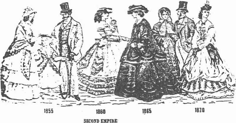 Plus tard, on les remplaça par un jupon tramé de crin de cheval d’où le nom de crinoline, puis ensuite par des sortes de cages en fer ou en bois.