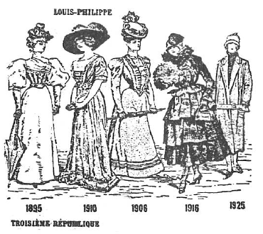 Les robes charleston apparaissent et, dans les années 30, la robe rallonge. Vers 1939, on revient vers la grande robe du soir semblable à celle du Second Empire.
