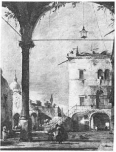 Guardi. Vue d’un portique à Venise