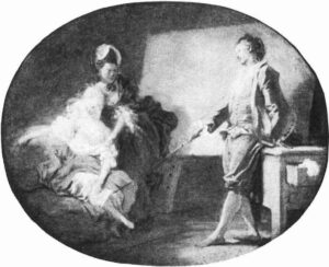 Plongeons-nous encore dans le XVIIIème siècle, mais dans son aspect léger, voluptueux et un tantinet libertin. D’autres noms que Fragonard nous viennent à l’esprit, des peintres, des littérateurs aussi, mais revenons à notre jeune et pudique – trop pudique – modèle.