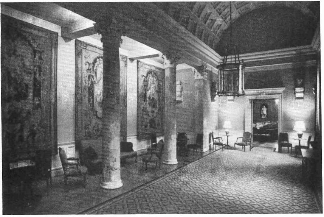 Parée de deux autres « Portières des Dieux », d’après Audran, et d’une tapisserie de Beauvais, dite « Tenture des Grotesques » et de quatre bustes en marbre posés sur des frontons (Musset, Villemain, Daudet, Mérimée), elle évoque, mieux que tout autre lieu, « l’esprit de l’Institut ».