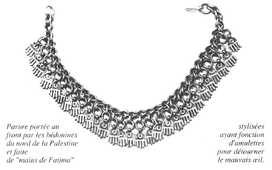 L’exposition présente l’évolution du costume féminin en Palestine et en Jordanie de 1850 environ à nos jours. Le style de vêtements traditionnels diffère selon chaque région. Souvent une localité est devenue le centre d’une mode régionale qui évolua peu par la suite. Les bijoux les plus répandus étaient des parures de cheveux en argent, des nattes, des mentonnières, accrochées de chaque côté de la coiffe ou du bonnet, des chaines et des colliers variés, des bracelets et des bracelets de cheville.