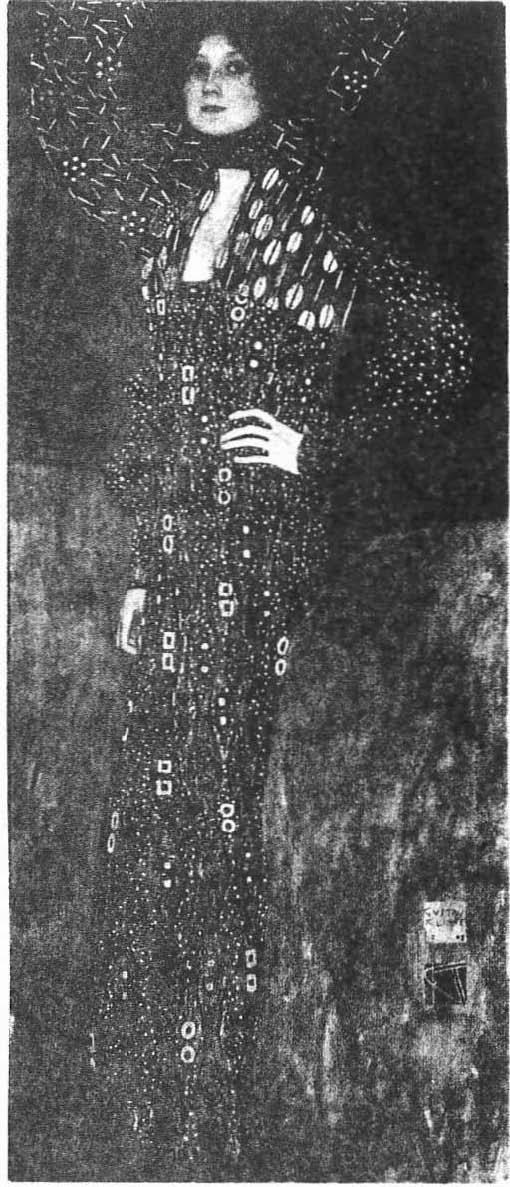 Rien ne laisse présager que le jeune Gustave Klimt, fils d’un orfèvre et dernier-né d’une famille de sept enfants, va révolutionner la peinture viennoise. Tout jeune, pour gagner un peu d’argent, il a exécuté en cachette des portraits d’après des photographies. Il est le disciple respectueux du peintre pompier Hans Makart. Son tempérament taciturne, introverti, semble le prédisposer plutôt à une carrière banale ponctuée de commandes officielles. Il est d’ailleurs l’un des artistes appelés à décorer le Burgtheater dont il illustre quelques lunettes au-dessus des escaliers par des scènes mythologiques. Avec « Amour », daté de 1885, Klimt abandonne le réalisme pour baigner ses personnages dans une atmosphère de rêve. Les branches de roses de la bordure évoquent – comme chez les poètes – la mélancolique beauté des sentiments et la fuite inéluctable du temps. En 1902, à l’âge de 40 ans, il bouleverse totalement sa manière de peindre. Et c ‘est un portrait étonnamment moderne qu’il brosse de la compagne de sa vie : Emilie Flôge. La jeune femme (photo 2) est propriétaire d’une maison de haute couture sur la grande rue commerçante de Vienne, et Klimt crée pour elle de nombreux modèles de robes. Le premier portrait carré de grand format (145 x 145 cm) exécuté par le peintre en 1898 lui a valu un triomphe de la critique. Il représente Madame Sonia Knips qui appartient à l’élite intellectuelle viennoise et propage avec son mari Antonio les nouvelles conceptions de l’art.