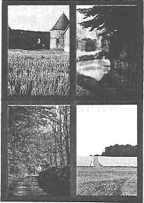« Quand j’ouvre les fenêtres de ma chambre, j’aperçois d’abord un morceau de « chez nous » … Quand je souhaite un horizon plus ample, je monte dans le jardin. Avec toujours la mème Surprise, j’y fais toujours la même découverte. De douces éminences arrondies commencent à nous sourire par-dessus l’épaule de notre colline familière … Si je veux encore plus d’espace, je sors de l’enclos et m’engage dans le bois … Parfois, assoiffé d’un vent plus fort, je chemine vers les bosquets du plateau … Un moment vient où villages et hameaux disparaissent …“