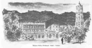 C’est au cours de l’époque prospère de l’occupation anglaise qu’Arthur Rimbaud est arrivé à Aden. Il a d’abord erré en Méditerranée, il a travaillé à Chypre, il s’est engagé dans une armée hollandaise pour partir à Java, il est revenu en Europe, il a travaillé à nouveau à Chypre, il est passé par l’Égypte où on lui a transmis une adresse, avec une lettre de recommandation pour aller à Aden.