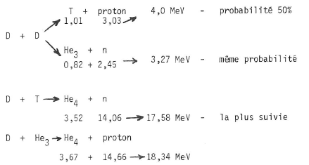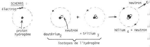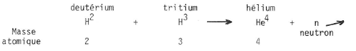 D2 + T3 —> He4 + n1 + Q (D = Deutérium, T = tritium, He = hélium, n =neutron)