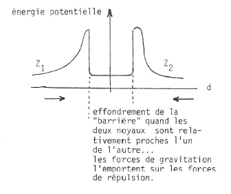 Pour que deux éléments légers, comme les isotopes de l’hydrogène, se fusionnent, il faut vaincre les forces de répulsion électrostatique entre deux noyaux positifs. Il faut leur communiquer, par haute température, une énergie suffisante pour leur faire franchir la « barrière ».