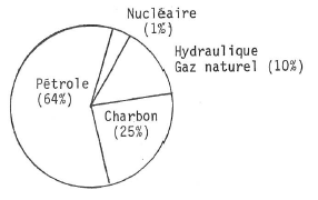 Sur le graphique est représentée la ventilation de la consommation des différentes formes d’énergie en France en 1972.