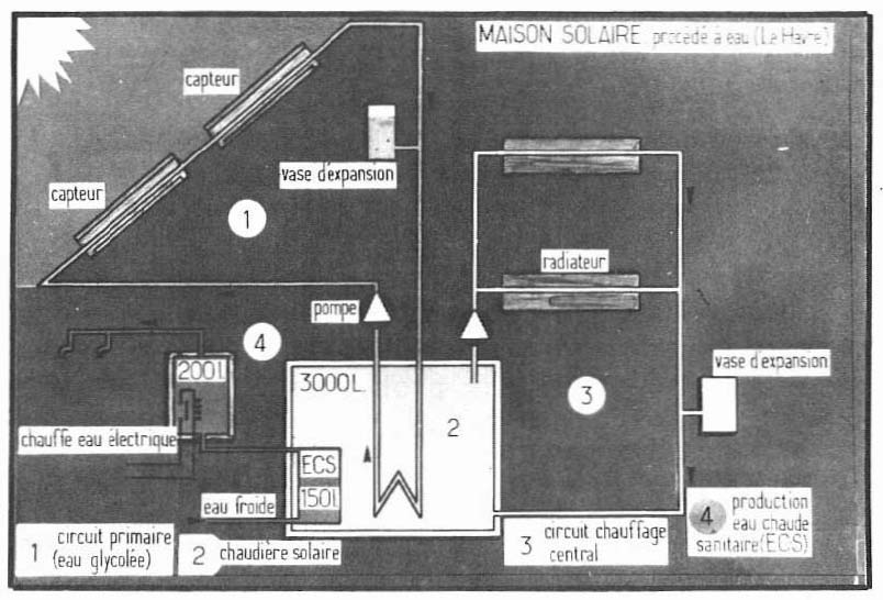SCHÉMA 3 : Maison solaire équipée de capteurs à eau