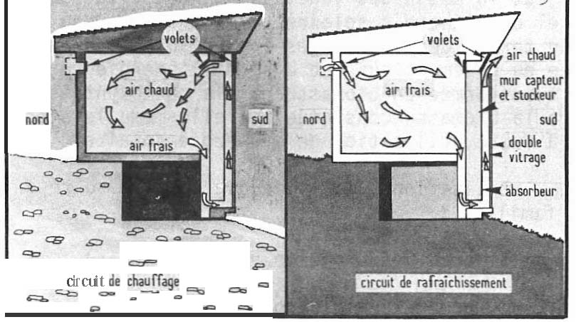 SCHÉMA 4 : Maison solaire procédé à air (Trombe-Michel)