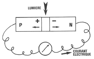 Si un photon (particule de lumière) vient frapper la zone de transition, il est susceptible d’arracher un électron à un atome de silicium, en créant à sa place un trou. Entrainés par le champ électrique, le trou va se déplacer vers le côté P et l’électron vers le côté N.