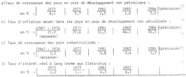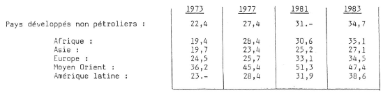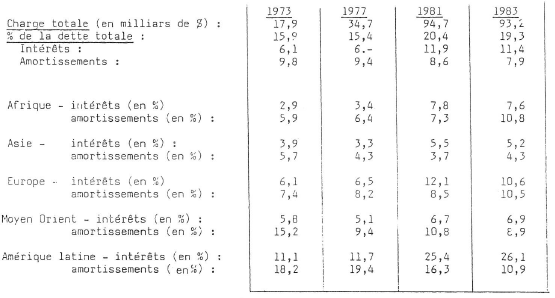 Le tableau 3 de l’annexe montre que le service de la dette extérieure hypothèque en moyenne pour 1983 : 1 an 1/2 des exportations de biens et services.