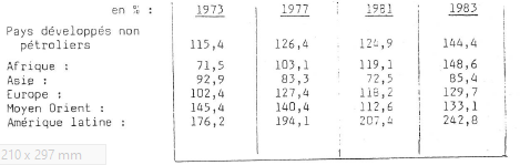 De 1973 à 1983, l’évolution de la dette des « Pays en voie de développement » a évolué de la façon suivante :