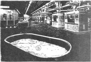 Fig. 2. La salle des pétrins. A = un pétrin, B = un bac de fermentation.
