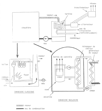 fig. 1. SCHEMA GENERAL D’UNE CENTRALE ELECTROGENE CLASSIQUE ET NUCLEAIRE