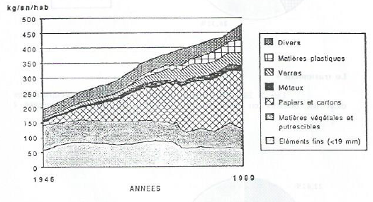 L’évolution des modes de vie a entrainé une augmentation de la quantité de déchets ménagers produits par un citadin et une évolution de la composition de ces déchets.