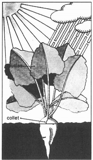 Le sucre, élaboré dans les feuilles par photosynthèse, est mis en réserve dans la racine de la betterave …