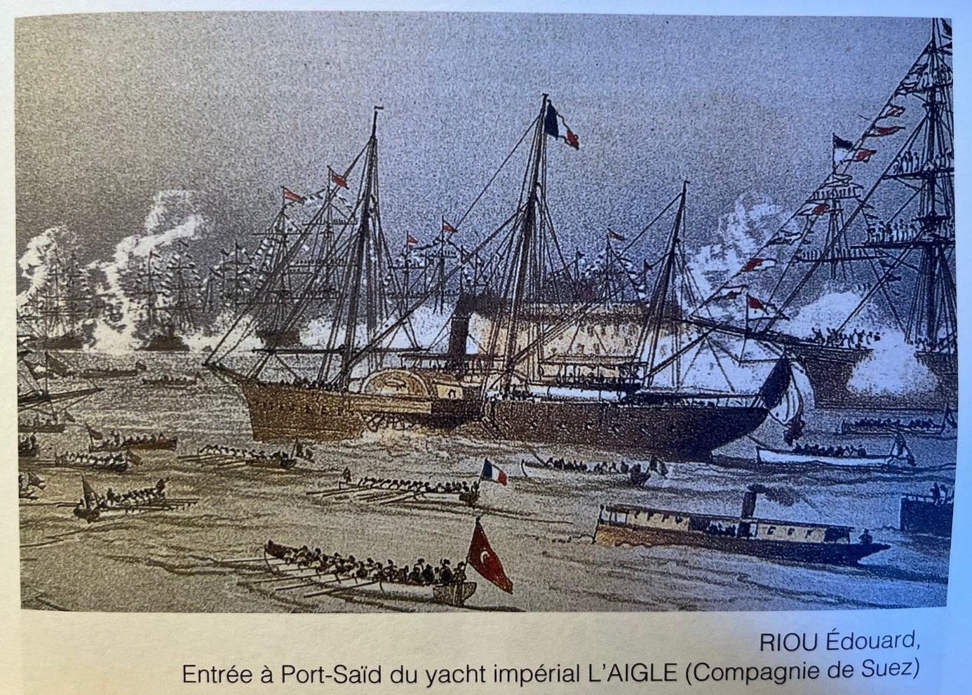 Le 17 novembre 1869, le yacht impérial l’Aigle à bord duquel l’impératrice Eugénie a pris place pénètre dans le canal du Suez à Port Saïd. Vers 15 heures, l’Aigle entre majestueusement et victorieusement dans le lac Timsah au milieu d’une population cosmopolite acclamant l’Aigle tout autant que l’impératrice et la France.