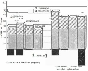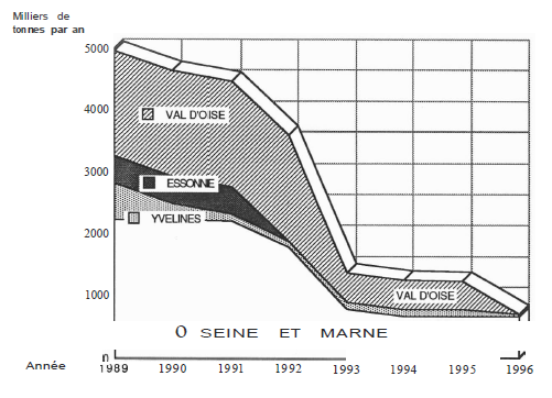 La courbe montre qu’en 1989, 5 millions de tonnes étaient mises en décharge. Actuellement on en met 4,5 millions de tonnes. Dans 2 ans, il est prévu 2 millions de tonnes.