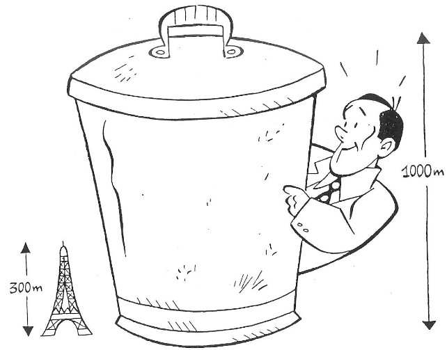 Chaque Français produit 1 kg de déchets par jour, soit 350 kg par an et 20 tonnes dans sa vie. La production totale de la France tiendrait dans une immense poubelle 3,3 fois plus haute que la Tour Eiffel. Le poids des déchets représente 2000 fois celui de la Tour.