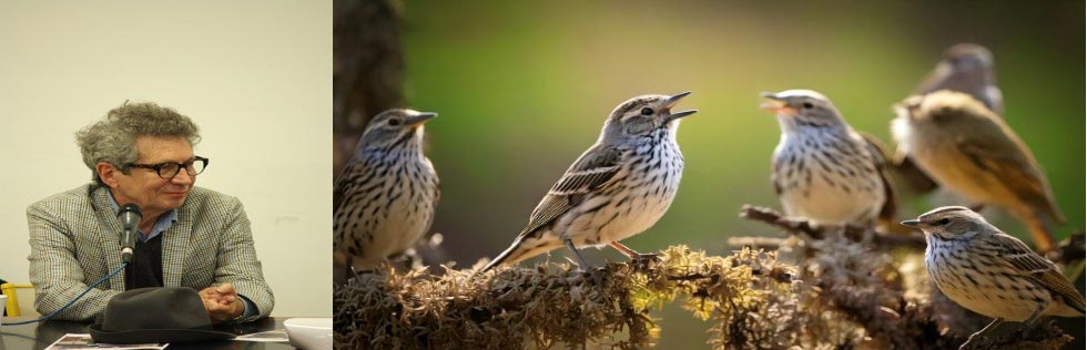 La communication acoustique est un moyen privilégié par tous les oiseaux ,et notamment les oiseaux chanteurs, pour communiquer et organiser leur vie sociale. Selon les espèces, les chants sont tantôt très simples ou d’une grande complexité. Leur signification est un sujet qui retient depuis longtemps l’attention des éthologues. Nous en présenterons différentes interprétations, et en particulier celles qui opposent les tenants d’une approche linguistique à ceux qui sont favorables à une explication musicale.