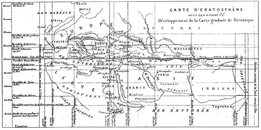 Alexandre, avec sa flotte commandée par Néarque, explora les côtes de la mer Érythrée et permit à Ératosthène de réaliser la carte ci-après (fig. 1).