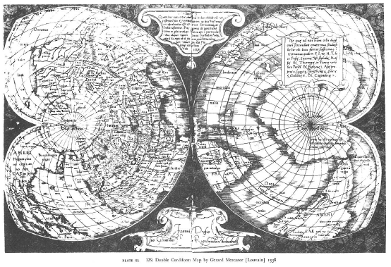 Depuis l’antiquité jusqu’à la découverte de l’Amérique, diverses images de la Terre ont été établies à partir des connaissances géographiques du temps, mais aussi, parfois, en fonction d’une certaine conception philosophique de l’univers. C’est le cas de la carte d’Ebstorf. Retrouvée au 19ème siècle, cette mappemonde était la plus grande carte médiévale connue. Elle mesurait, en effet, 3,50 m de côté. La terre y était représentée comme océan unique ; il est à peu près impossible d’y reconnaître la forme des mers et des continents et le tracé des chaînes de montagne et des rivières obéit à la plus grande fantaisie. Cependant, on y retrouve les principales villes qui jalonnaient les divers itinéraires romains du Bas-Empire. En fait, les préoccupations du cartographe sont ici moins géographiques que théologiques. Des scènes bibliques illustrent cette carte.