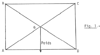 Ce poids P est appliqué au centre de gravité G placé au point de rencontre des diagonales AC, BD.