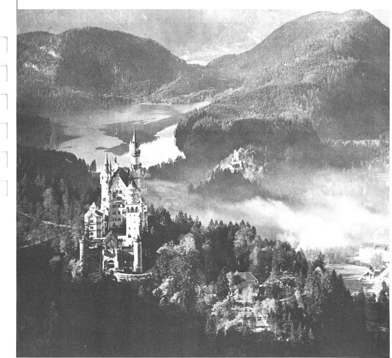Nous quittons Munich pour rejoindre à quelques kilomètres de là le château de Nymphenburg (photo 3). Autrefois en pleine campagne, aujourd’hui intégré dans l’espace urbanisé, il a su préserver son vaste parc de 200 hectares où se côtoient avec harmonie les styles français et anglais. Au détour d’une allée, apparaît le pavillon de chasse. C’est dans ce château que naquit le 25 août 1845 Louis II de Bavière. Très rapidement il délaisse Nymphenburg pour rejoindre le château familial de Hohenschwangau à une centaine de kilomètres de Munich au pied des alpes bavaroises, dans un cadre magnifique. Petit à petit le roi Louis II se détache de ses fonctions et se consacre uniquement à la construction de son premier château : Neuschwanstein (photo 4). Il semble tiré d’un conte de fées. Sur un promontoire solitaire, au milieu de la forêt et des monts, il dresse sa silhouette fantastique au-dessus d’un lac. Ce château pose des problèmes au gouvernement bavarois car le piton rocheux sur lequel il est construit commence à s’effriter et des moyens considérables sont mis en œuvre pour le préserver.