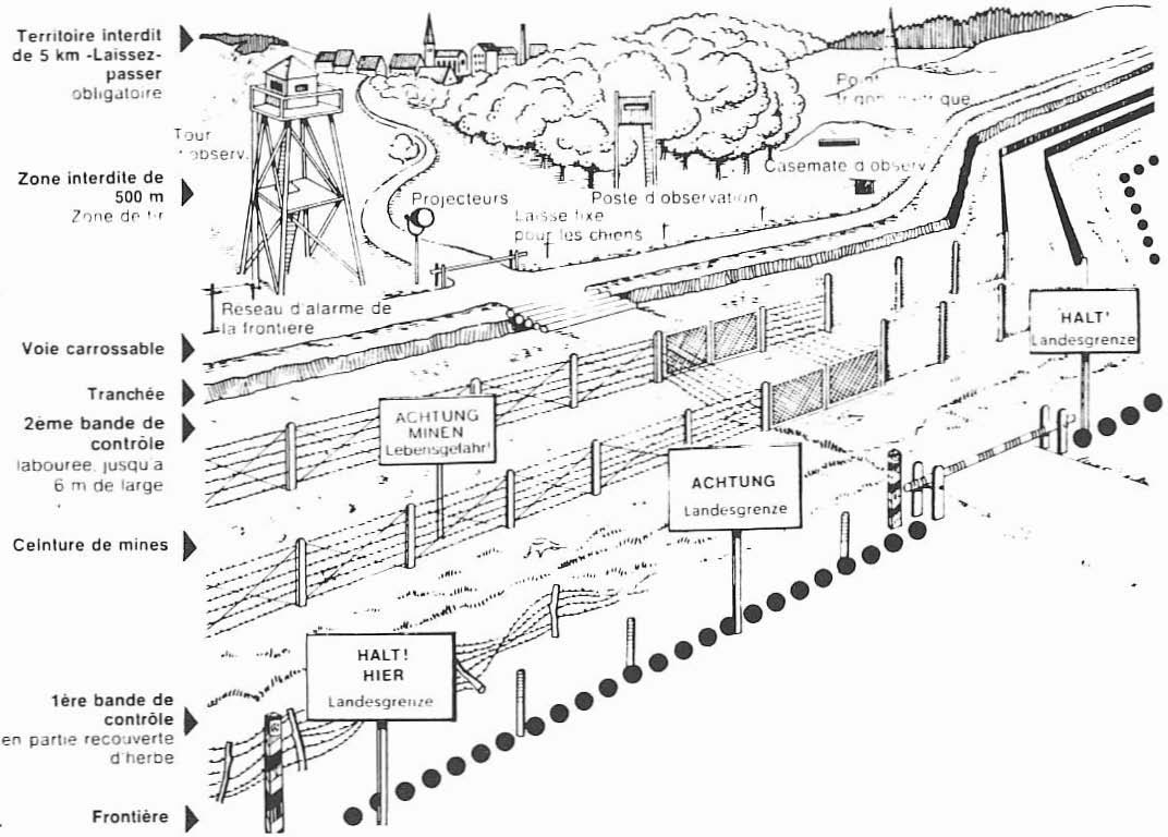 Après la capitulation du 8 mai 1945, les Alliés s’attribuent chacun une zone d’occupation … Petit à petit, les soviétiques se séparent des autres ; en mai 1952, la ligne de séparation entre le secteur soviétique et le secteur des autres Alliés est renforcé par les Russes qui installent, outre des barbelés, trois zones successives infranchissables.