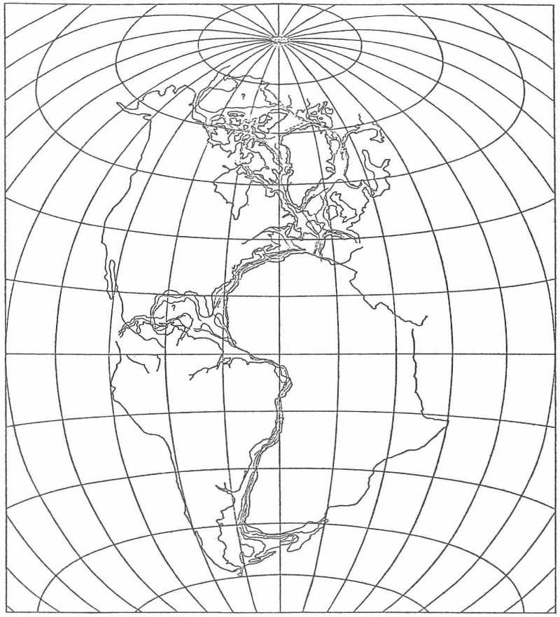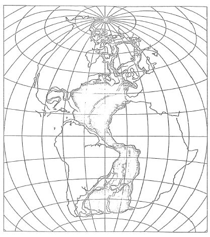 Il y a 165 millions d’années (fig. 4), l’Amérique du Nord, l’Amérique du Sud, le Groenland, l’Europe et l’Afrique formaient une seule et immense étendue continentale. La montée des magmas venant de l’intérieur de la Terre disloqua ce super continent. Ces magmas donnèrent naissance à une nouvelle croûte océanique qui sépara les continents septentrionaux de l’Eurasie et de l’Amérique du Nord, provoquant l’ouverture de l’Atlantique Nord et élargissant la mer des Caraïbes.