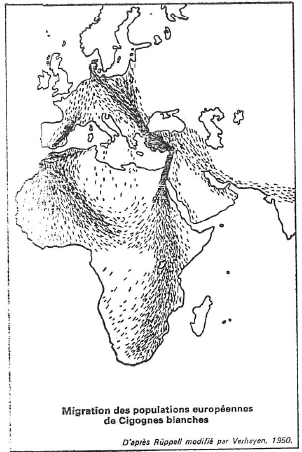Les invasions des Hommes, les déplacements des peuples, l’émigration d’un être humain sont toujours très irrégulières dans le temps et l’espace ; ce sont des déplacements sans retour, à sens unique. - D’autres déplacements sont beaucoup plus réguliers et coïncident avec les phases cruciales du cycle vital d’un animal ; ils comportent toujours un retour vers le point de départ. Ils méritent seuls le nom de migrations qui seront donc définies comme un ensemble de déplacements périodiques, intervenant entre une aire de reproduction qualifiée de patrie, et une aire où l’animal séjourne un temps plus ou moins long, en dehors de la période de reproduction, et qu’il quitte ensuite pour retourner dans la première ; il y a un cycle fermé entre deux territoires, un de reproduction et un d’hivernage ou d’alimentation.